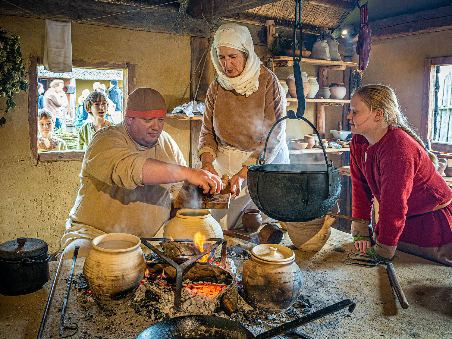 Ein besonderes Highlight werden die vielen unterschiedlichen Zugänge zur mittelalterlichen Ernährung sein, die die Besucher an diesem Tag kennenlernen können. Auf der einen Seite werden verschiedene Herstellungsprozesse wie das Bierbrauen, die Milchverarbeitung, das Kochen oder auch Räuchern vorgeführt, zum anderen aber auch Fragen zum Gewürzfernhandel und Gütertransport sowie zur Konservierung von Lebensmitteln thematisiert. Auch auf den Ackerflächen des Freilichtlabors wird an diesem Tag fleißig gearbeitet und die Zugochsen werden im Einsatz zu sehen sein.